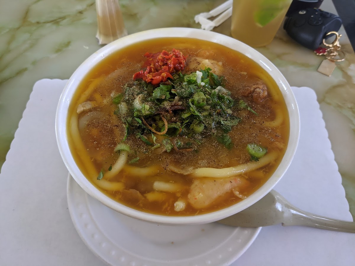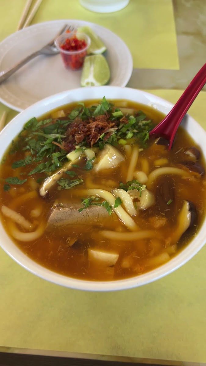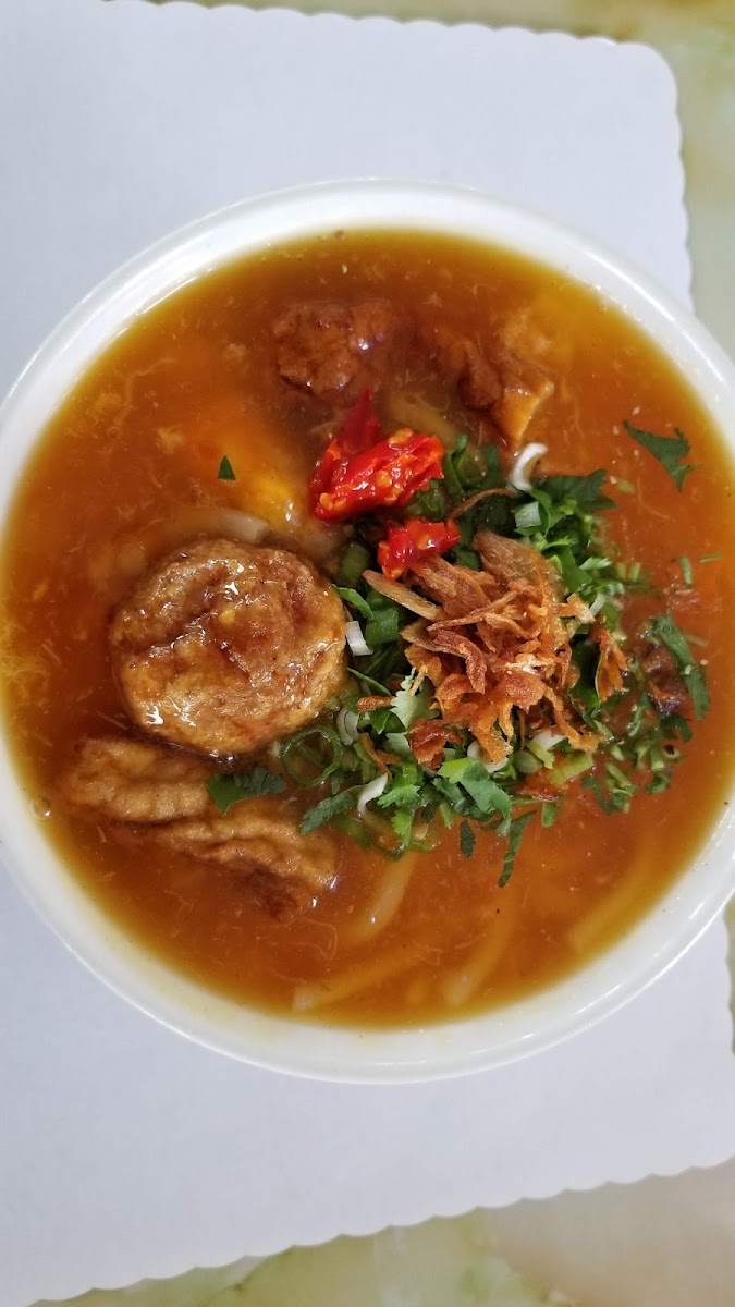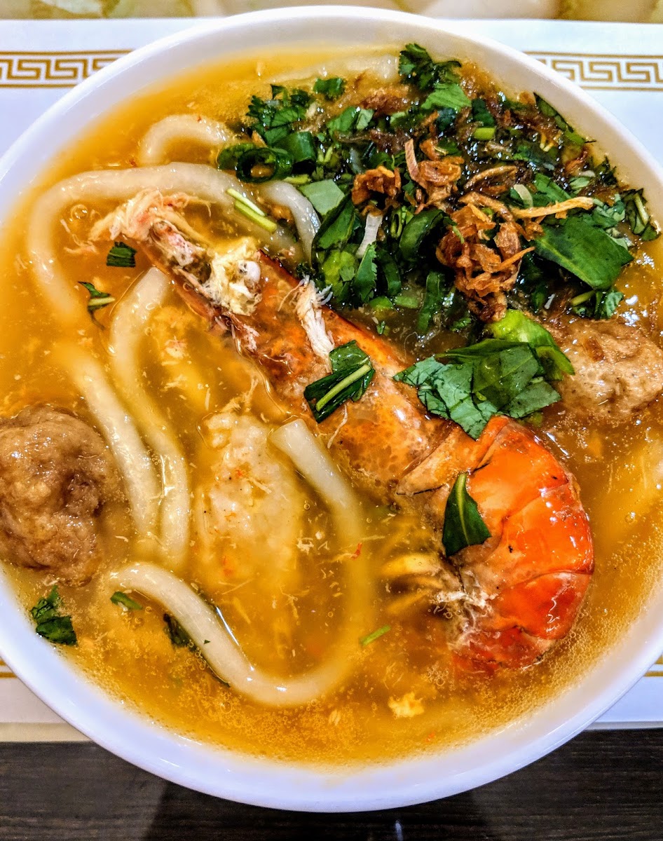 Que Em Que Anh And Hoa Binh Restaurant, located at 14472 Brookhurst St in Garden Grove, CA, is a unique spot that offers a refreshing take on Vietnamese cuisine. The restaurant is well-known for its specialty dishes, particularly its Bánh Canh and various regional Udon dishes. If you’re craving a rich, flavorful bowl of noodles, this is the place to visit. One of the standout dishes is the Bánh Canh, often highlighted for its delicious mix of shrimp cakes, thick broth, and perfectly cooked noodles. The restaurant also offers a range of Udon options from different regions of Vietnam. The Nha Trang special Udon, for instance, features a delectable combination of shrimp, fish patties, and crab meat in a thick, fresh broth that has become a favorite among many. The flavors are authentic, and adding some chili and lime really enhances the taste, creating an enjoyable and well-balanced dish.